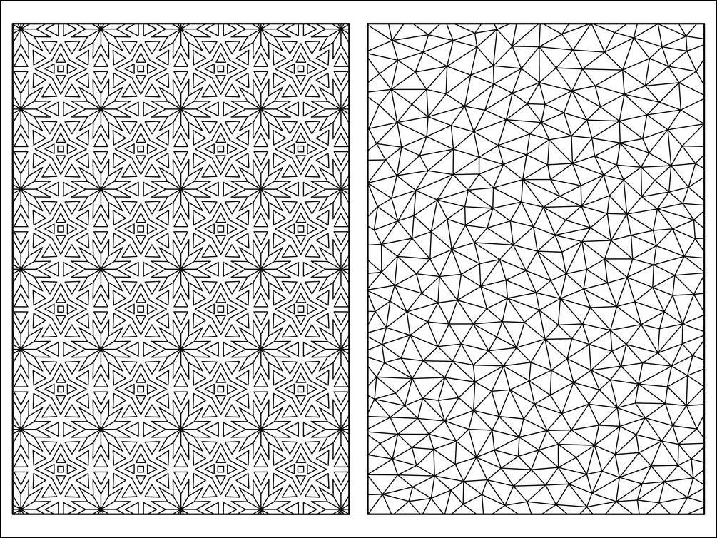 This product contains 10 printable colouring sheets featuring high-quality repeating geometric patterns designed and produced without AI. The patterns vary in complexity and will provide many hours of satisfying and relaxing colouring.